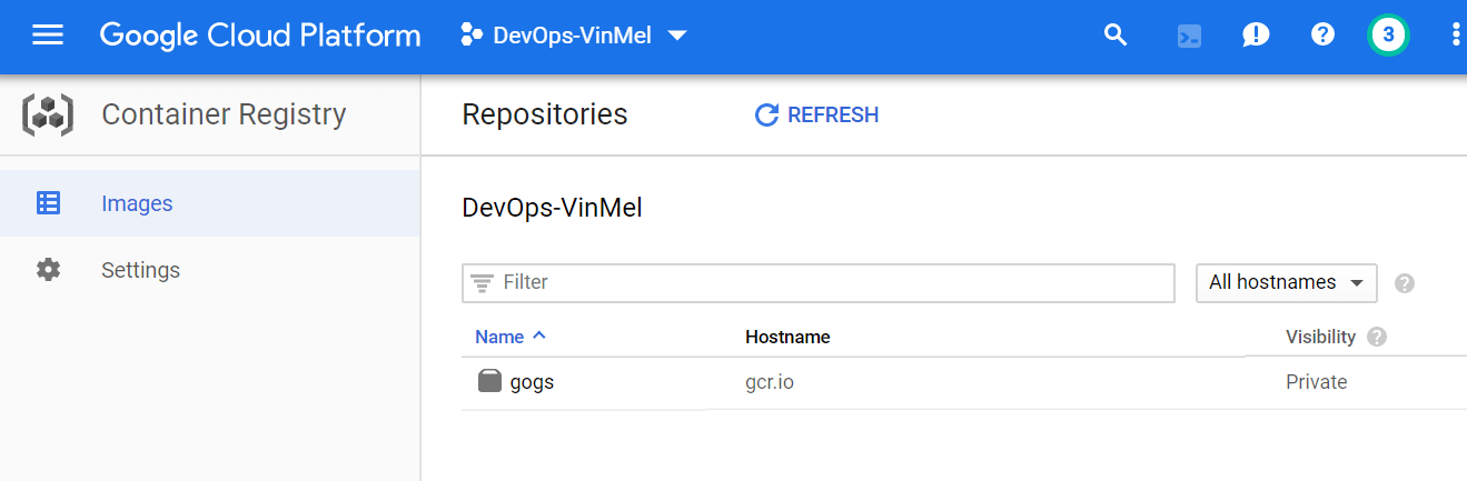 If you open Container Registry for first time, you will see a blank list as above as you haven’t setup anything inside. Let’s pull some image from docker hub ( hub.docker.com ) and store it in our private GCR. For testing I am pulling some sample images like gogs . (Gogs is simple self-hosted Git service with Web GUI; Learn more )