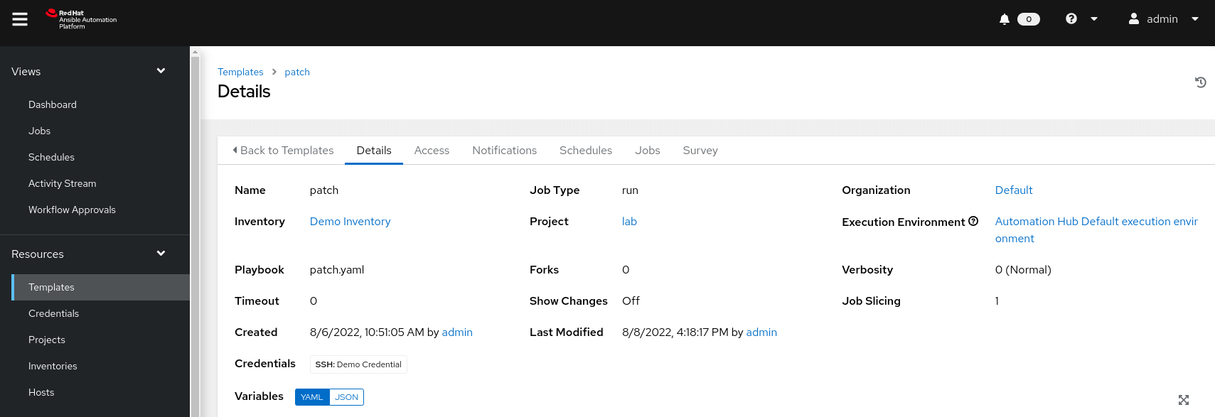 Job Template patch