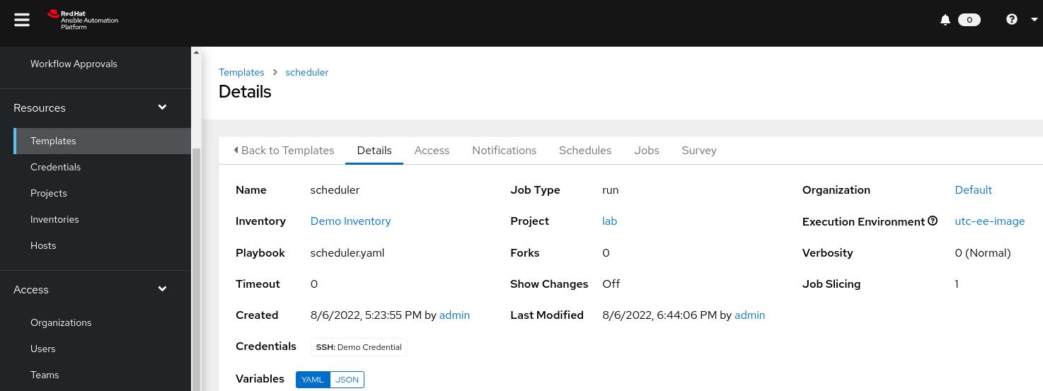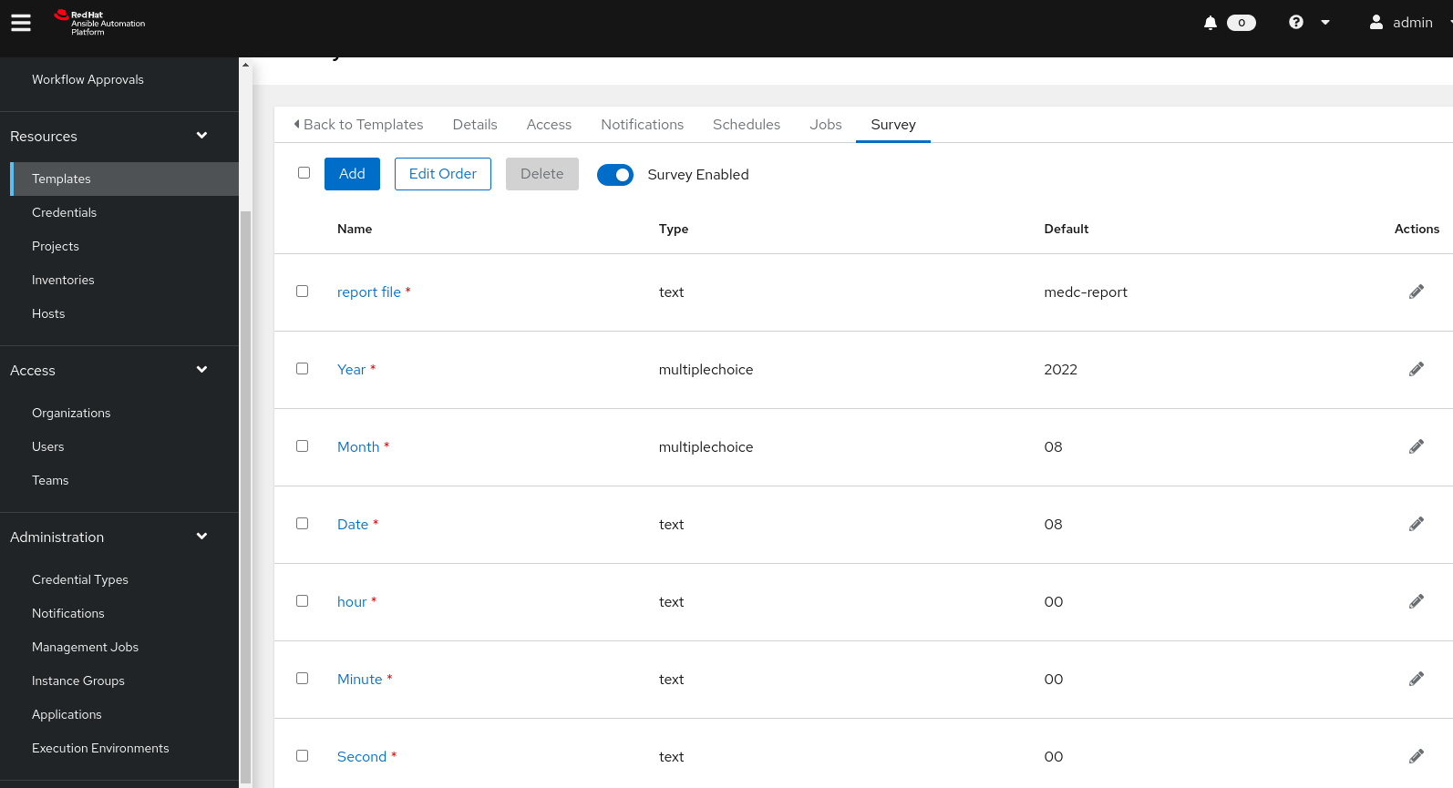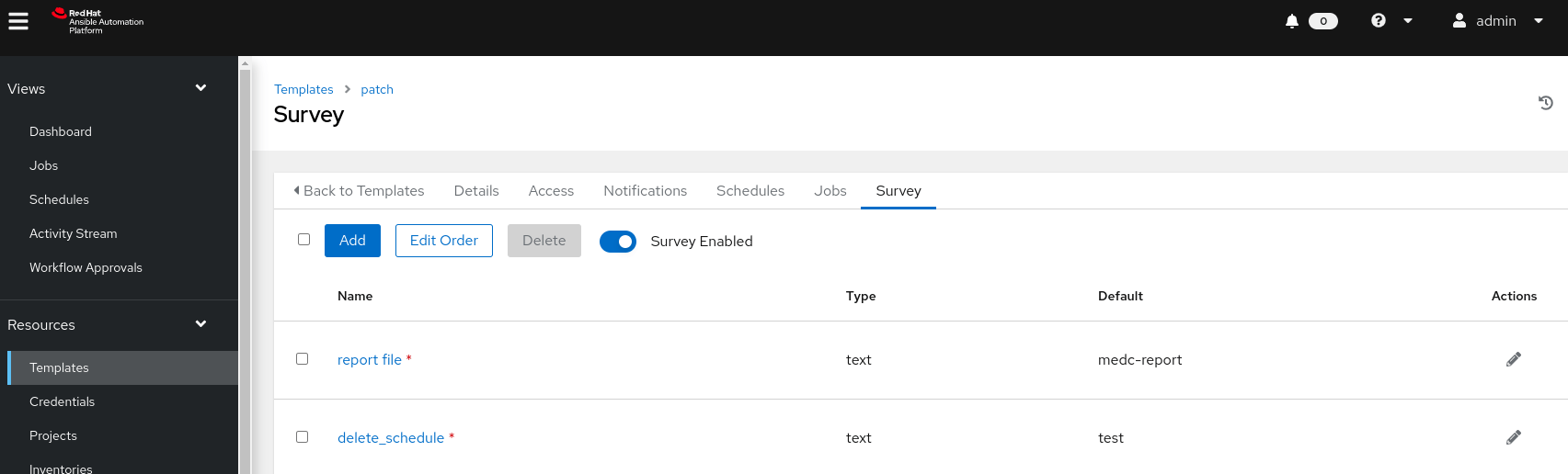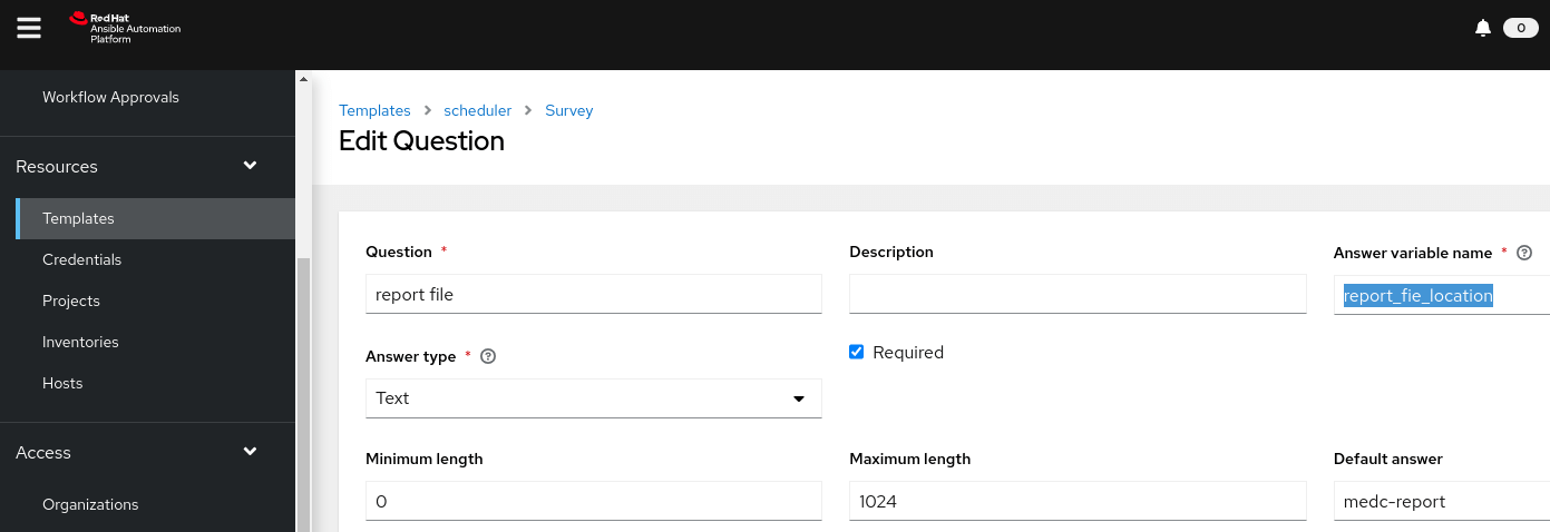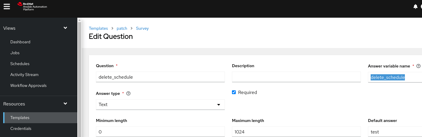 Job Template schedule – Survey