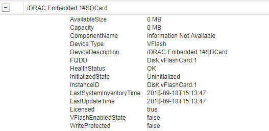 Verify the card is installed; in iDRAC GUI -> Hardware -> Removable Flash Media.