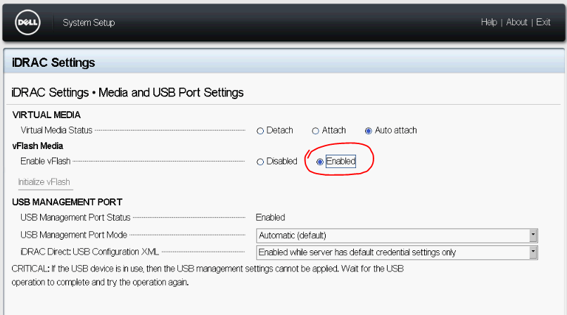 Enable vFlash as below.