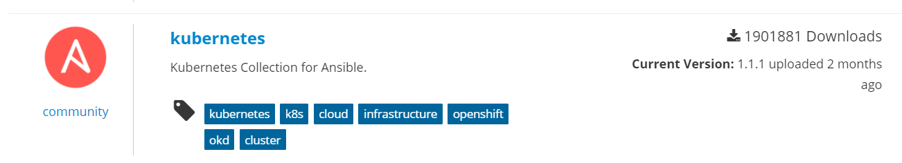 So I visited Ansible Galaxy and searched for kubernetes and I can see there are several results. But I already knew that, I need to install the kubernetes collections by community .