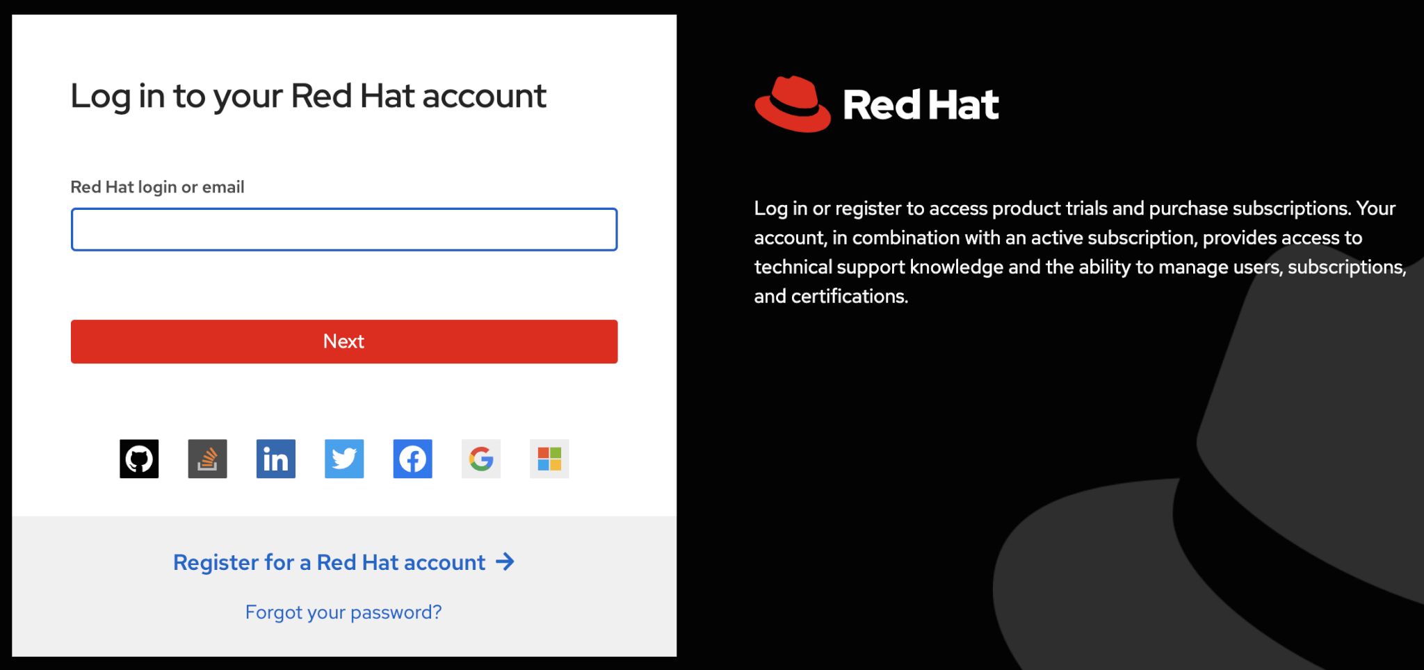 - You can skip this step if you have a Red Hat account (Personal or Enterprise)