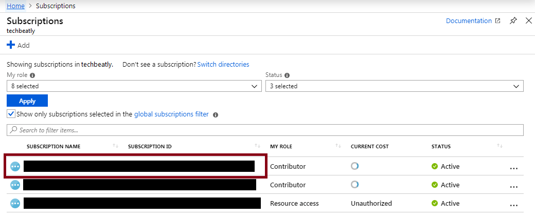 Choose your subscription to manage (Remember to choose the correct one if you have multiple subscriptions)