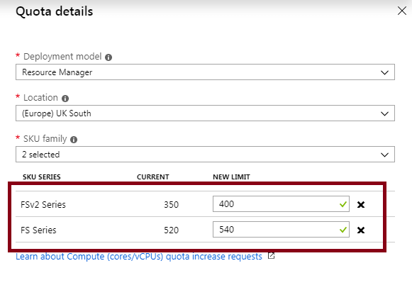 Choose quota details for your multiple resources eg: FS Series, FSv2 Series in our case and mention new limit in the input box.