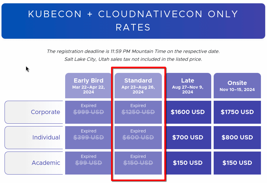 - Corporate, KubeCon Only : $1,250 (originally $1600) – Use code: TECHBEATLY_C