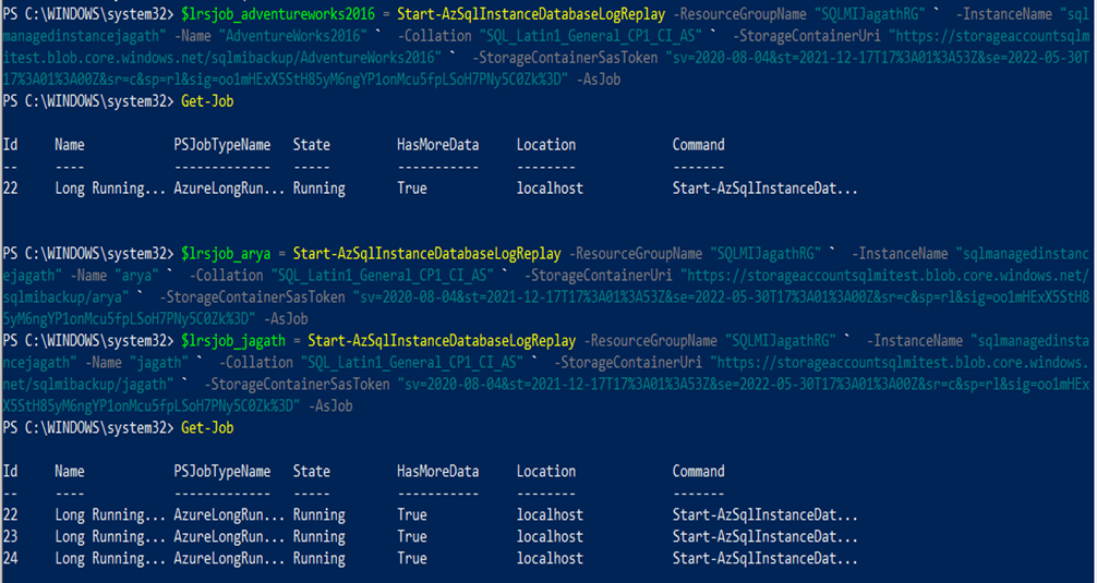 Now we can run the migrations via powershell job to execute them parallelly and save time. Please refer to the section here . Below screenshot shows once we start the LRS jobs