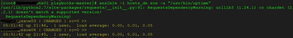 Simply run ansible <host group> -a "command" to test, if the setup is working or not.