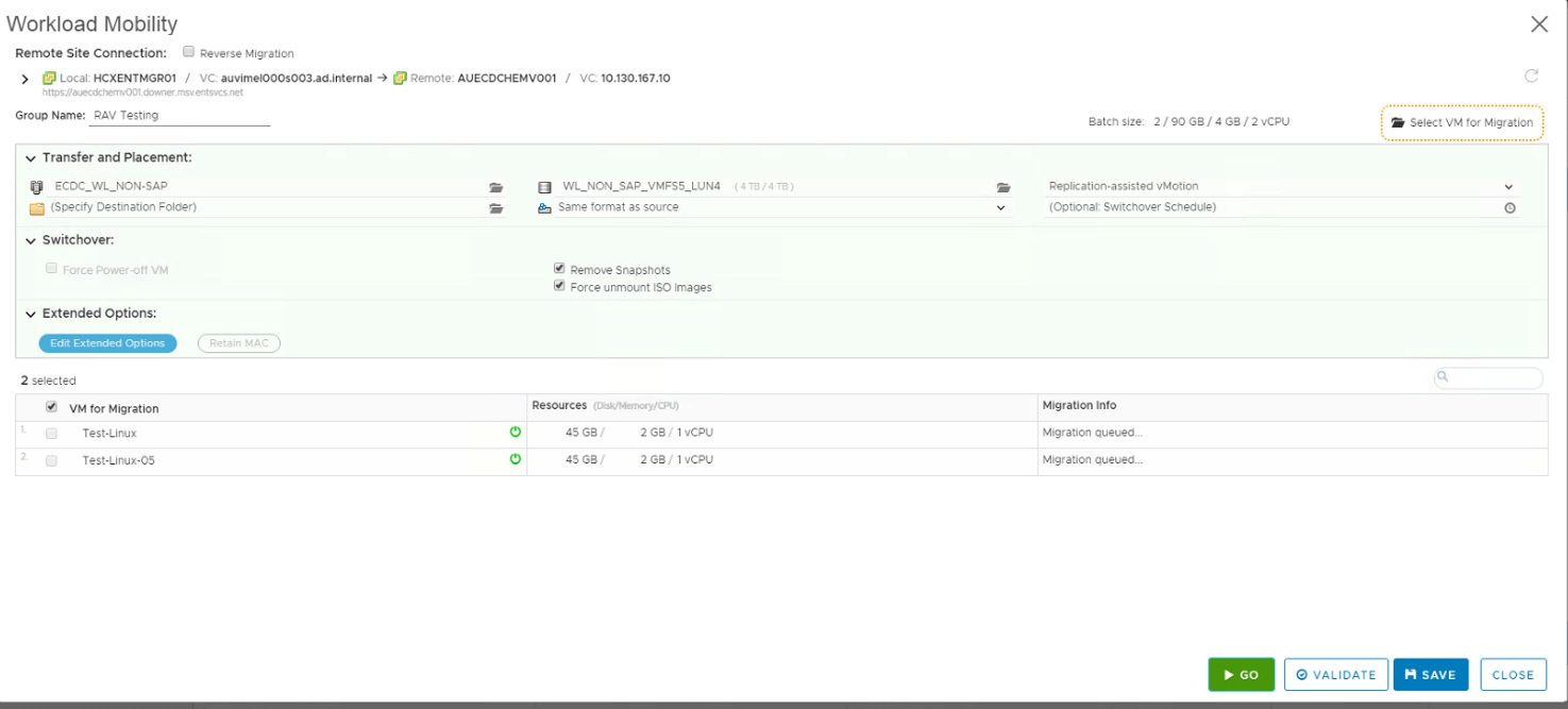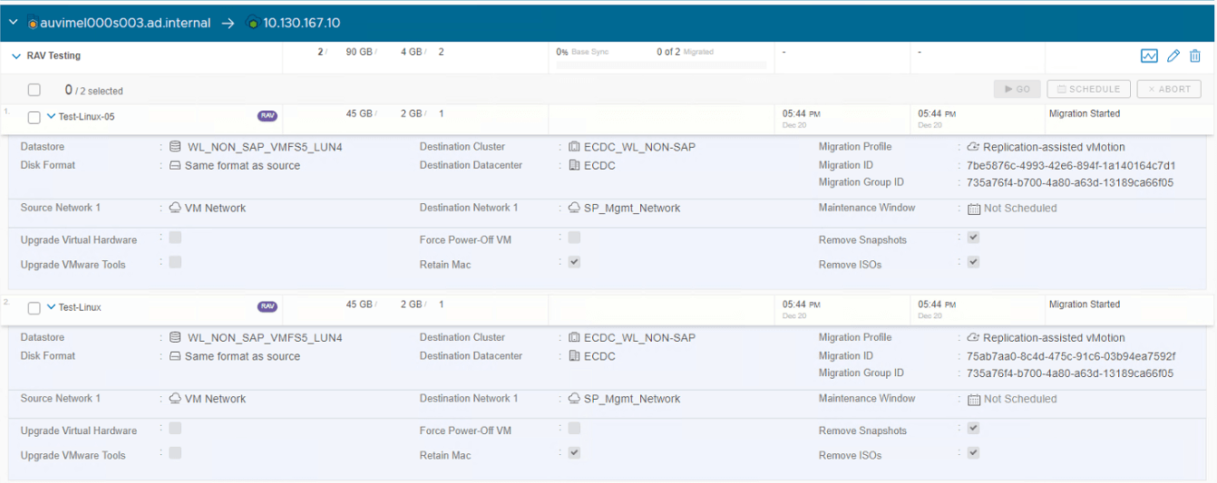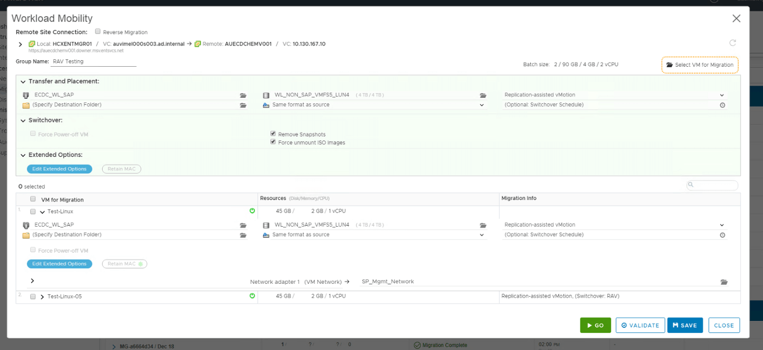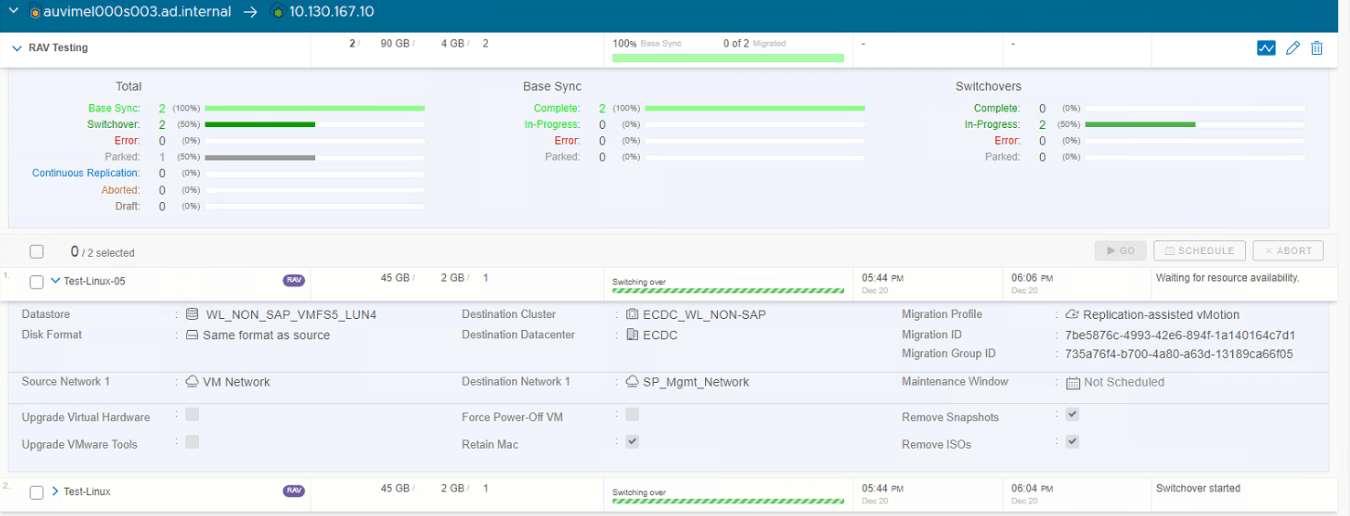 This is another type of vMotion where we can schedule data sync in advance like Bulk Migration method. Like vMotion, RAV also do not keep any copy of the source VM and uses sequential movement of each VM. I will be explaining in detail about this migration here.