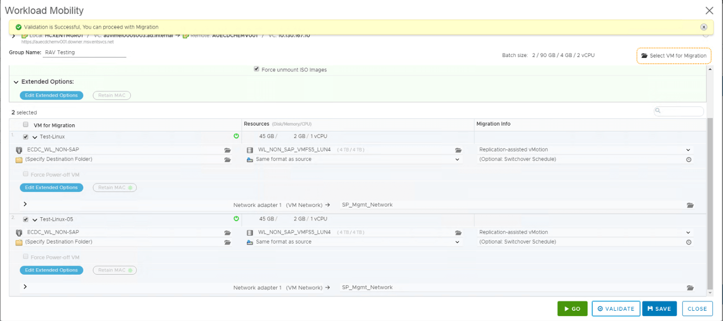 Once you mapped the NIC for each VM with correct NIC at target, click validate button. You can either save this job as draft, come back and do later or validate and save it or else click Go, it will validate and initiate the job.