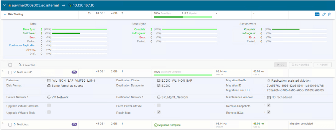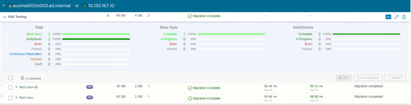 Once all VM’s in the batch successfully migrated, overall batch job will show as “Migration Complete”.